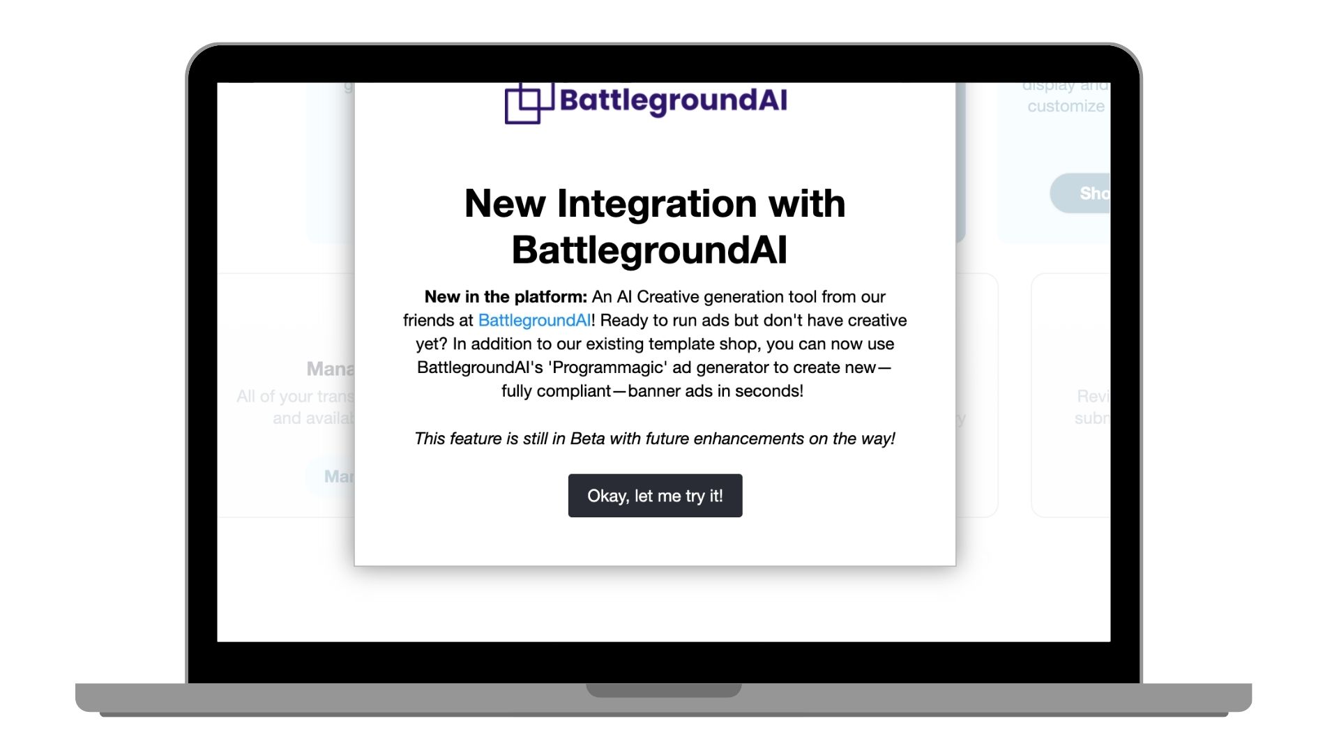 • Programmagic API lets you generate perfectly compliant images - and soon, video - wherever you build, manage, and run ads.